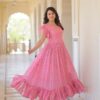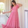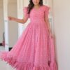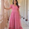 Women's Cotton Floral Printed Ruffle Anarkali Gown Dress (Pink)Women’s Cotton Floral Printed Ruffle Anarkali Gown Dress (Pink)