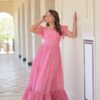 Be the first to review “Women’s Cotton Floral Printed Ruffle Anarkali Gown Dress (Pink)”