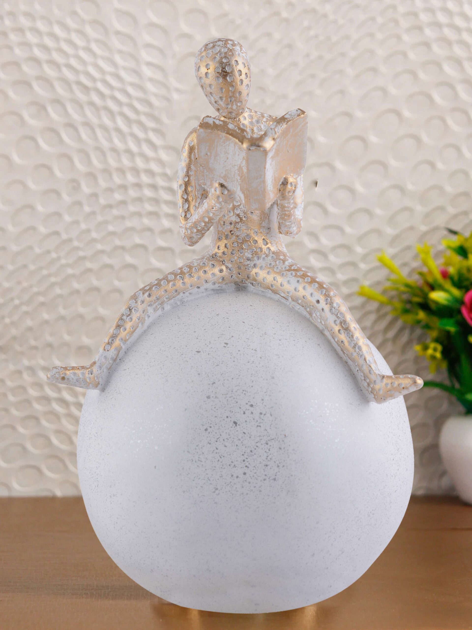 Men Sitting on Ball Showpiece for Home Decor Showpiece, Atlas Sculpture for Office Table Décor multicolour