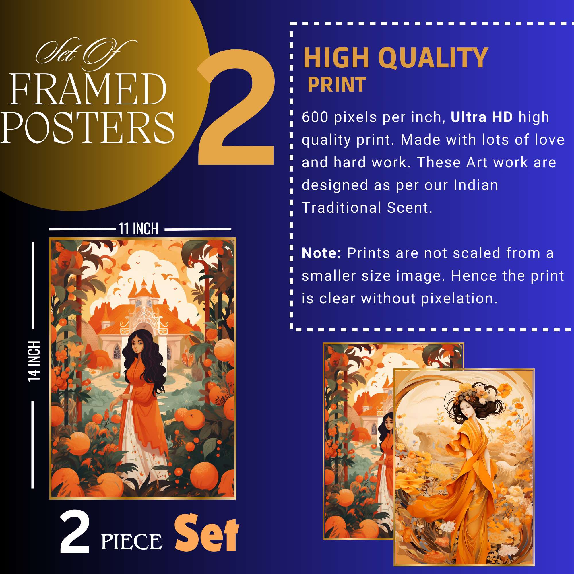 Set of Two Wall Paintings for Wall Dacoration Golden Framed Wall Paintings for Living Room & Bedroom Wall Art for Home Decoration & Office Wall Décor (14×11 inch CH-GD2-20)
