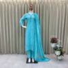 Be the first to review “Women’s Chinon Silk with Cotton Thread Embroidery Straight Kurti With Pant and Dupatta set” Cancel reply
