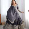 Women’s American Silk Sequence Embroidery Long Anarkali Kurti Gown With Dupatta