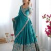 Women’s Silk Heavy Embroidery Sequence Work Long Anarkali Kurti With Pant and Dupatta Set