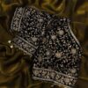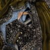 Women’s Luxe Olive-Gold Silk Saree with Heavily Embellished Blouse & Border – Ideal for Evening, Wedding & Reception Wear