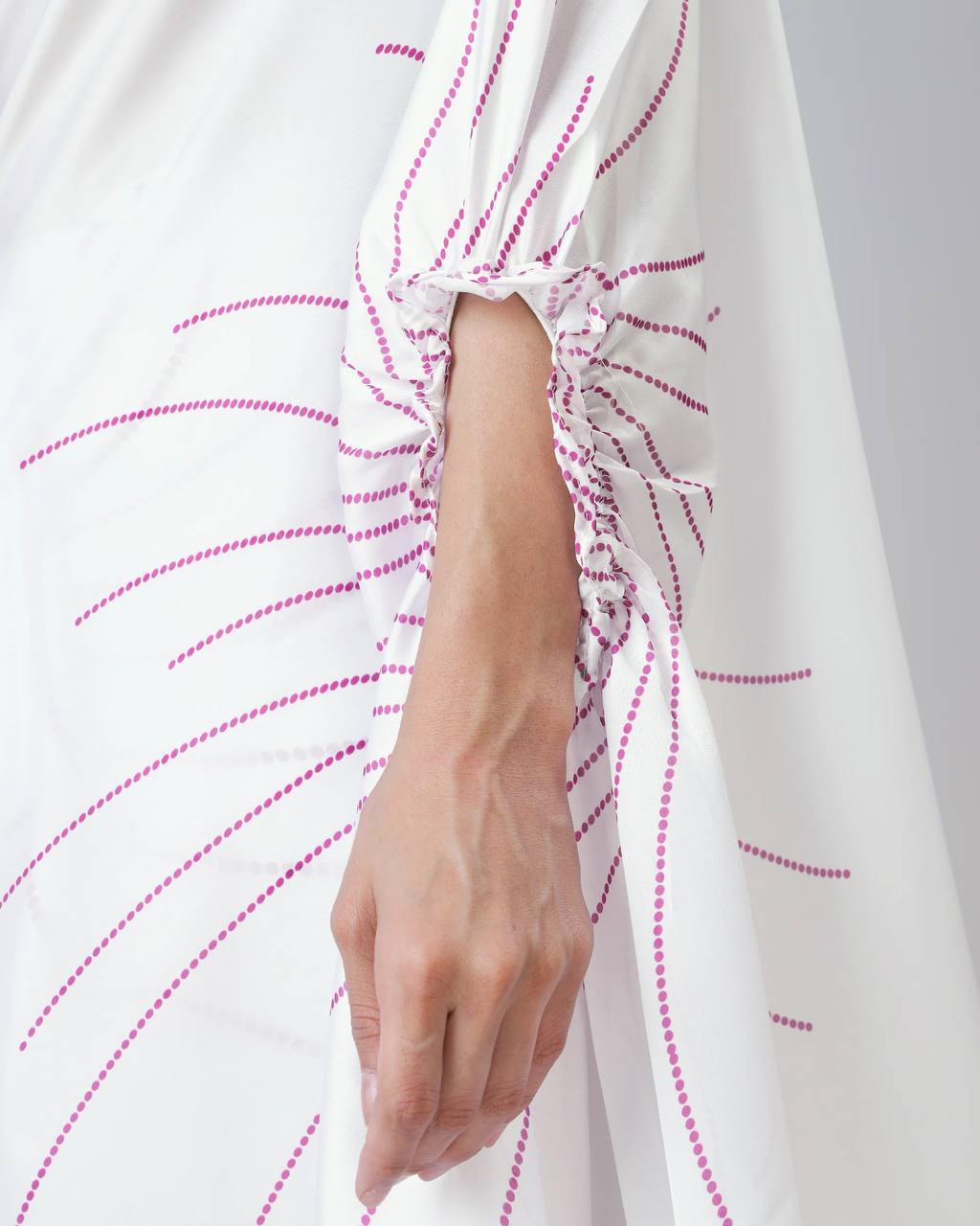 Be the first to review “Women’s Modern Dual-Tone Peach & Off-White Satin Silk Kaftan Saree with Digital Print Neck Design”
